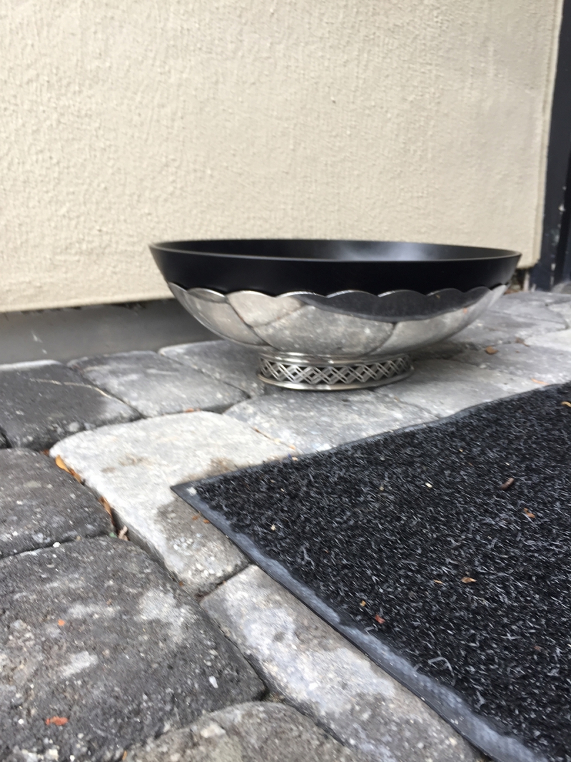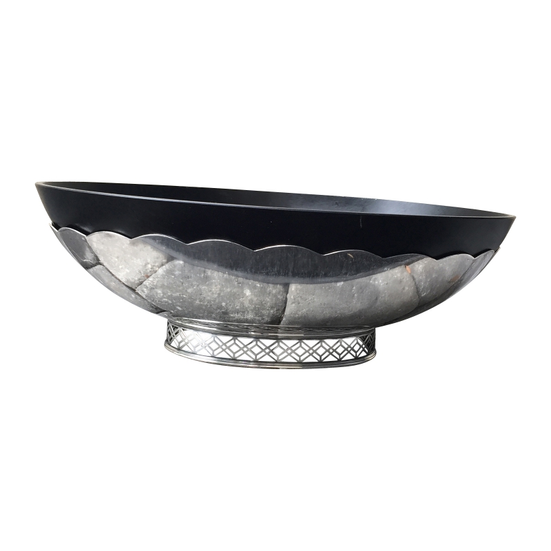 MID CENTURY REED & BARTON SILVERPLATE CENTERPIECE WITH LINER, OVAL SCALLOPED, FILIGREE FOOTED, MARKED 305 A