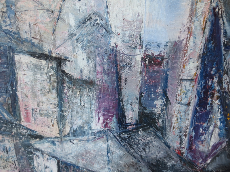 20thC ABSTRACT OIL PAINTING "STRUCTURAL SQUARE" BY DORIS R. ALLEN, SIGNED