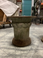 A PAIR OF 19thC IRON DIRECTOIRE GARDEN PLANTERS FLUTED WITH LEAF DETAIL
