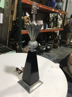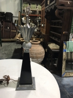 MID C ART DECO STYLE NICKELED LAMP W/ EBONIZED BASE