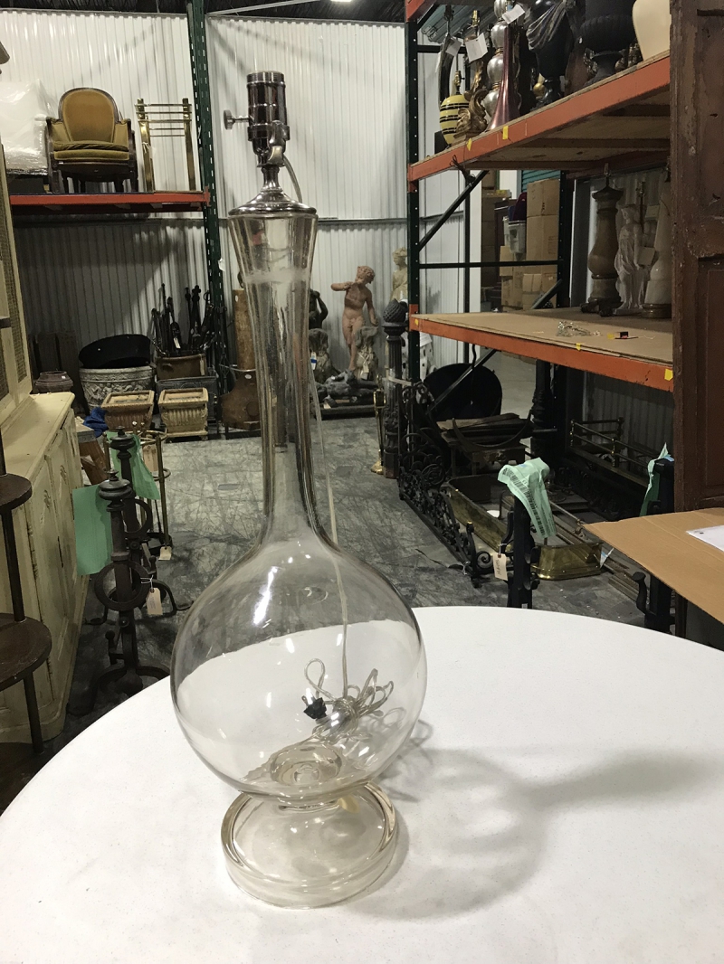 EARLY 20thC GLASS BOTTLE AS LAMP