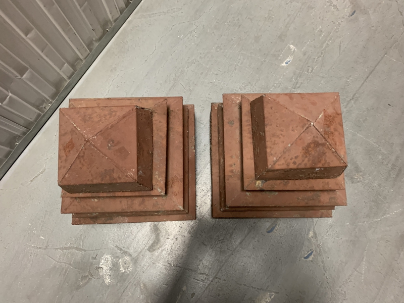 19thC AMERICAN TIN FINIALS, RUST COLORED
