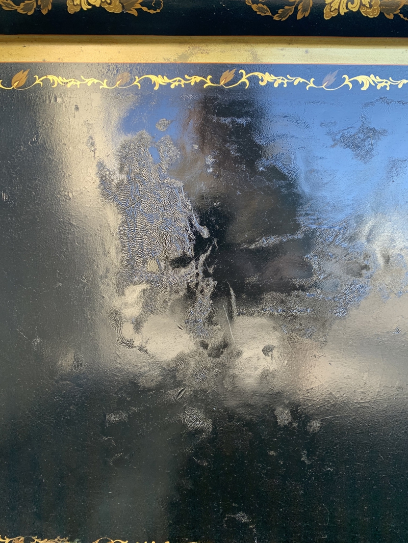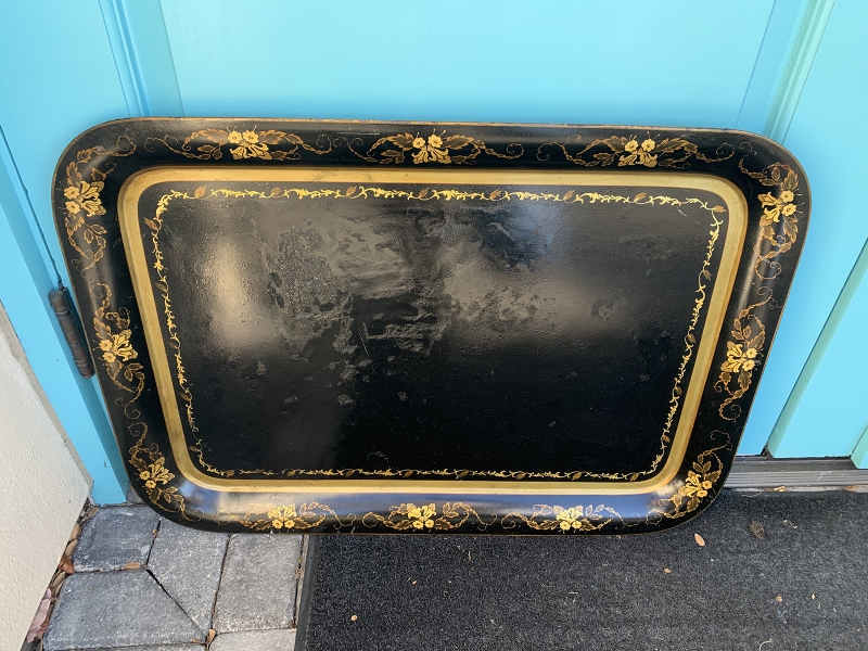 19thC BLACK TOLE TRAY WITH GILT FLOWER BORDER (SALE, ORIGINALLY $2,150)