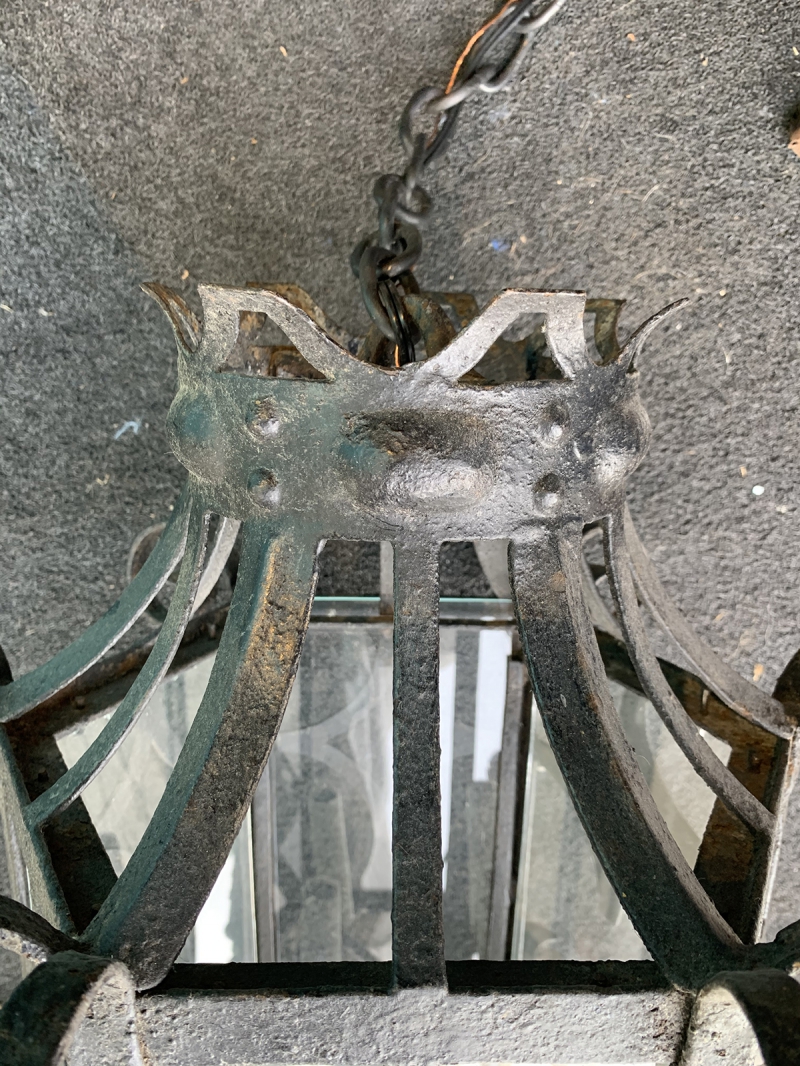 LATE 19thC/EARLY 20thC IRON LANTERN W/ SCROLL DETAIL