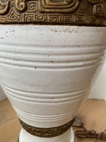 MID C POTTERY & GILDED LAMP IN THE STYLE OF JAMES MONT