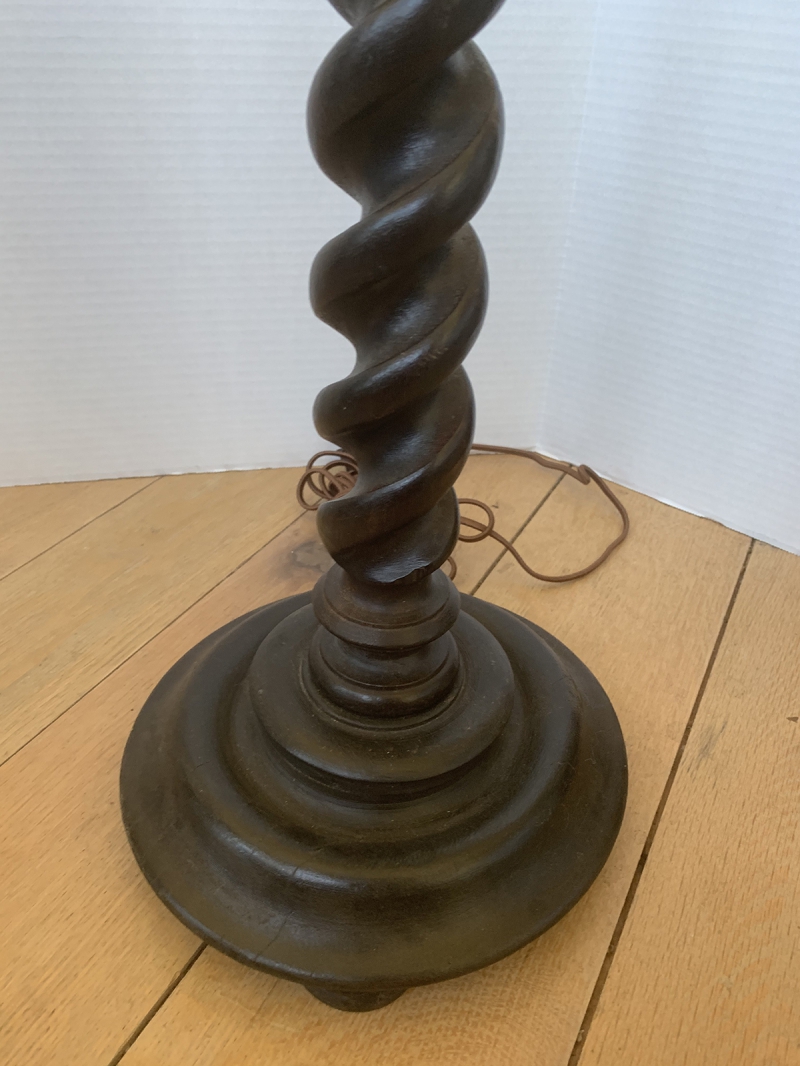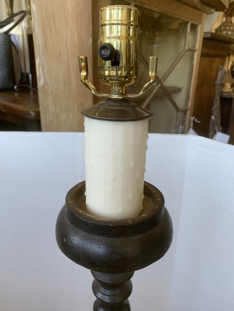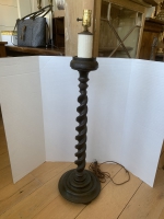 20thC EBONIZED BARLEY TWIST CANDLESTICK LAMP