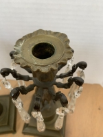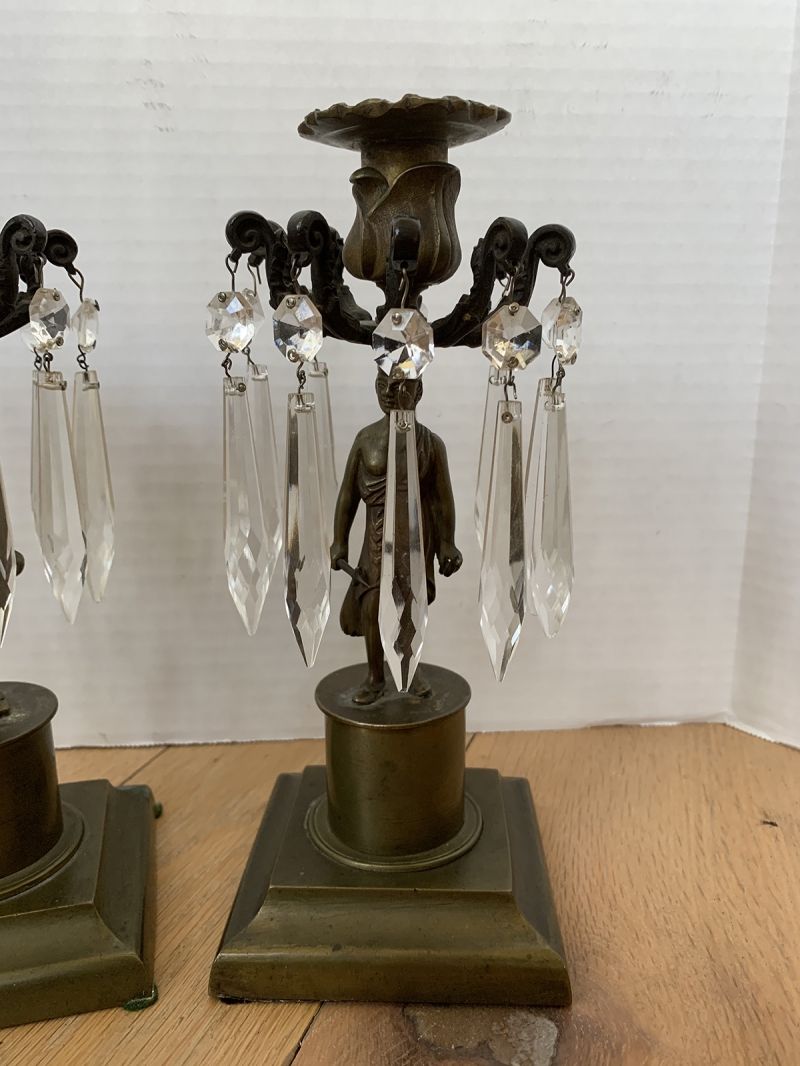 PAIR OF 19thC BRONZE & CRYSTAL FIGURAL CANDLESTICKS