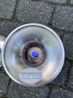 MID 20thC FISHER SILVERPLATE ICE BUCKET W/ STERLING BULL & BEAR, MARKED, W/ THERMOS? LABELED INSERT