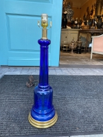 MID 20thC FREDERICK COOPER STYLE COBALT BLUE LAMP, TYNDALE LAMPS STICKER, BRASS BASE