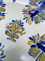 • Description: 18thC DELFT FAIENCE POLYCHROME CHARGER W/ PLATE HANGER, SIGNED V.M.D.