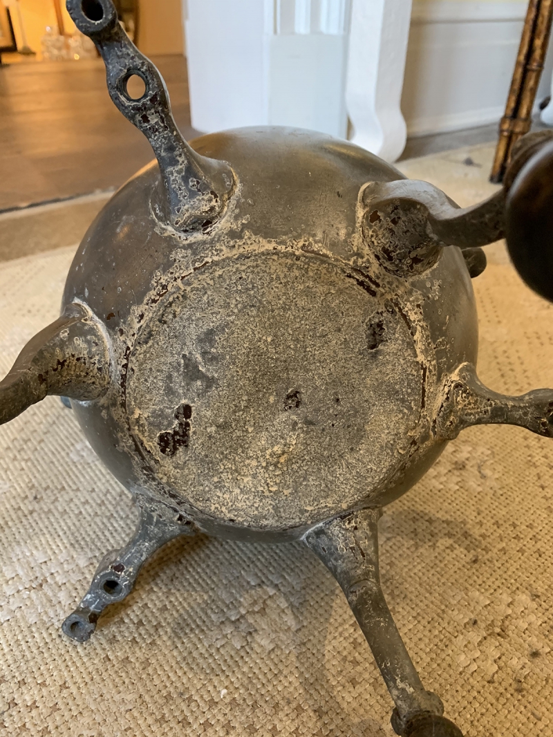 EARLY 18th/19thC PEWTER LIDDED HOT WATER URN W/ 3 SPOUTS & WOODEN HANDLES